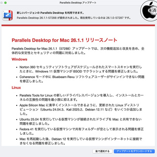 Alludo、不具合を修正した「Parallels Desktop for Mac 26.1.1」をリリース