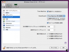 Parallels Desktop 6 for Macのメニューから、仮想マシン>構成をクリックし、オプション>バックアップを選択すると、Time Machineの項目が用意されています。
