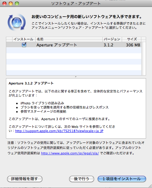 ・このアップデートは、Aperture 3 のすべてのユーザに推奨されます。