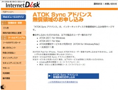 ATOK Sync アドバンスを利用するためには、ATOK 2011 for Macのユーザー登録(アップグレードユーザーは自動登録済みの場合あり)を行ったあと、最初に「ATOK Sync アドバンス 無償領域のお申し込み」にアクセスし「Just アカウント」を通して、インターネットディスクに入会します。