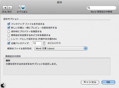 Microsoft Word for Mac 2011の環境設定>保存で「バックアップ ファイルを作成する」と「自動バックアップ」にチェックを入れます。