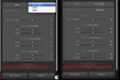 Adobe Photoshop Lightroom 4では、カメラキャリブレーションの処理エンジン表示が「2012」となり、Adobe Photoshop Lightroom 3の「2010」より新しくなっています。