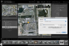 マップは、Adobe Photoshop Lightroom 4内にGoogleマップが表示され、撮影した写真をマップ上にドラッグするだけで、写真に対してGPS情報を付加することが出来ます。