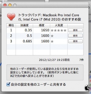 「おすすめ設定」ボタンをクリックすると、他のユーザーが使用している設定をランキング形式で見ることができます。