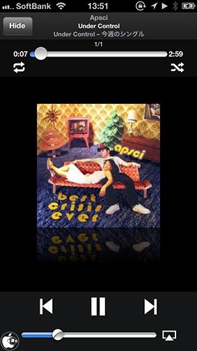 バックグラウンド再生も可能で、再生を止めるには、一旦トップ画面に戻ると、画面下に再生ボタンが表示されているので、それをタップして停止出来ます。