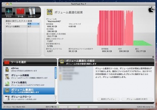 ハードディスク内に分散しているファイルを一カ所に集めて無駄無くつめ直し Mac のハードディスクの有効活用を行う「ボリューム最適化」機能が大幅に改善されています。