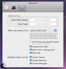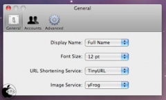 設定で、ディスプレイネームの表示形式、フォントサイズ、短縮URL(bit.ly、TinyURL、is.gd、tr.im、DiggBar)、画像投稿先(yFrog、TwitPic、Twitgoo、Posterous)などの変更を行なうことができます。また、マルチアカウントにも対応しています。
