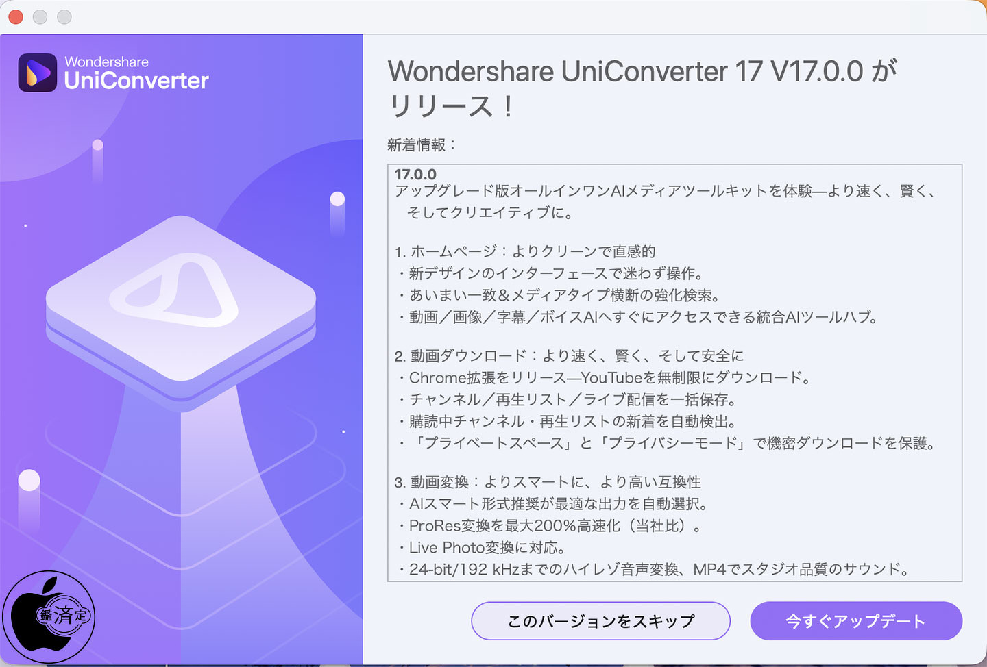 Wondershareが、動画変換ソフトウェア「Wondershare UniConverter 17 for Mac」をリリースしています。