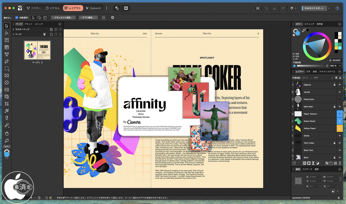 Canva、AIツール以外無料で利用できるプロフェッショナルデザインアプリ「Affinity 3 for macOS」をリリース