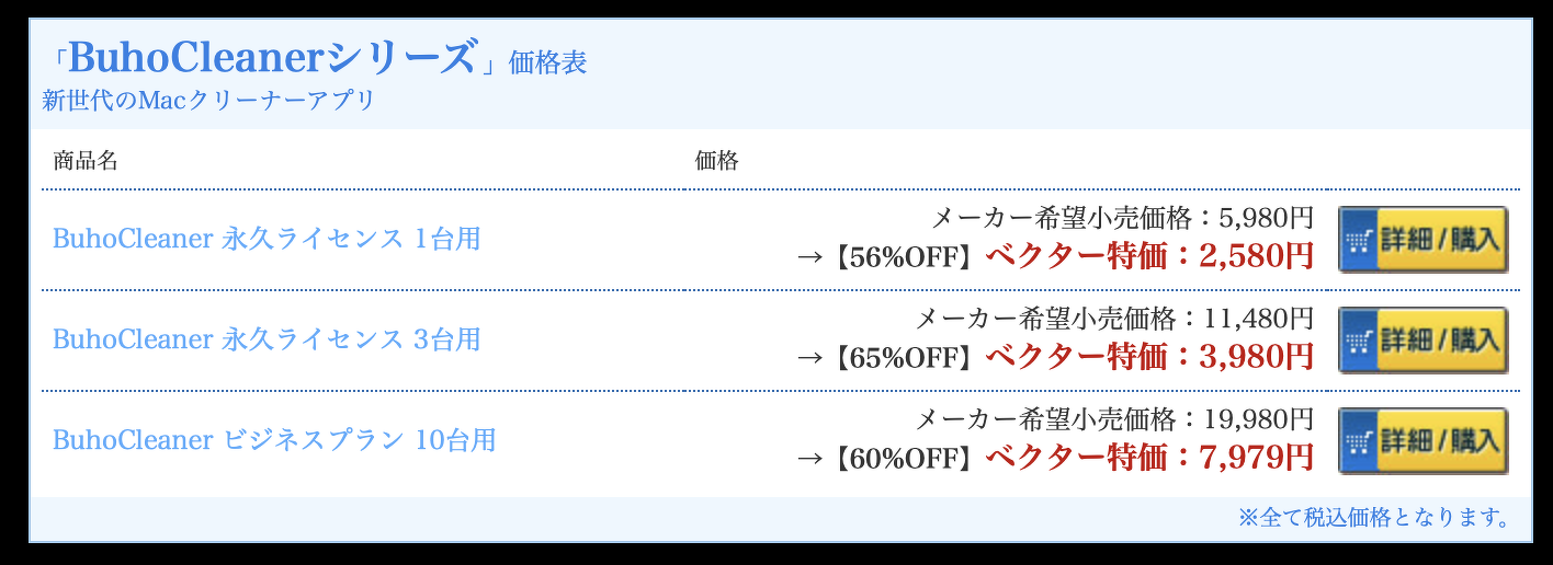 BuhoCleaner 永久ライセンス 1台用:2,580円(通常5,980円)