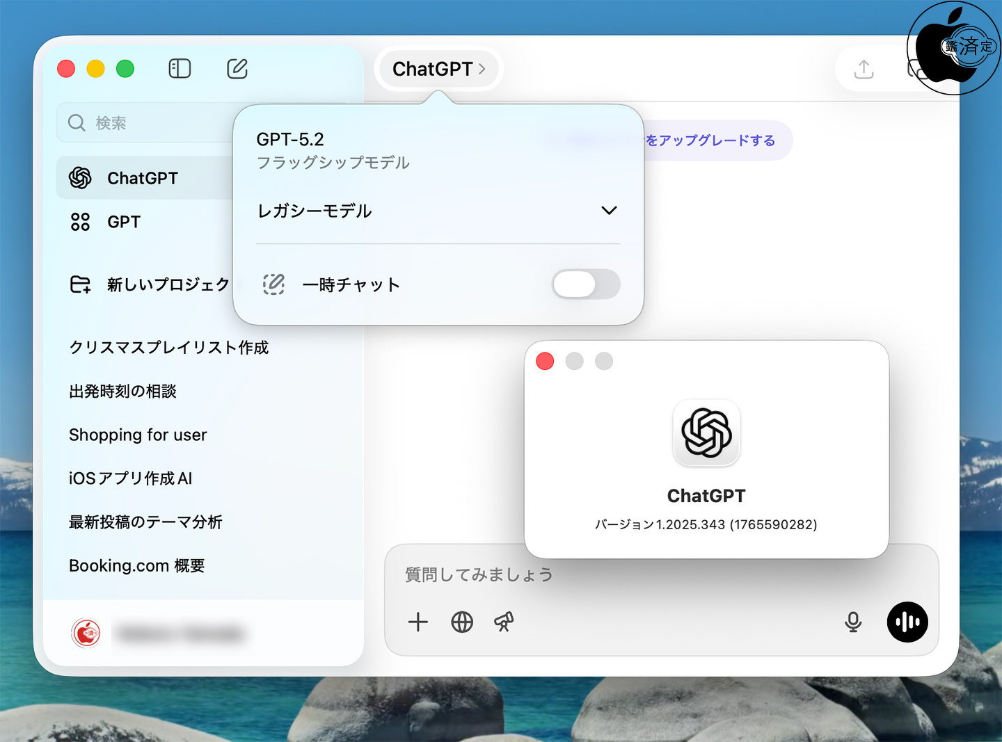 OpenAI、Liquid Glassデザインに対応したMac用デスクトップアプリ「ChatGPT desktop app for macOS 1.2025」をリリース