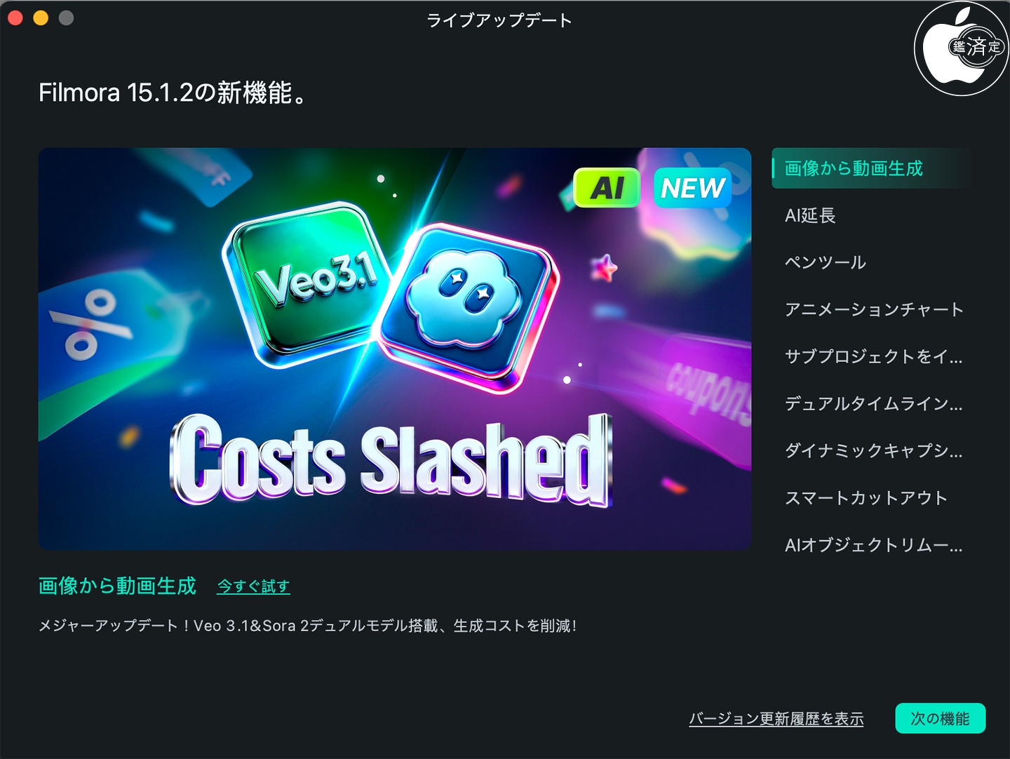 Wondershareが、AIビデオ編集ソフトウェア「Filmora 15.1.2 for Mac」をリリースしています。