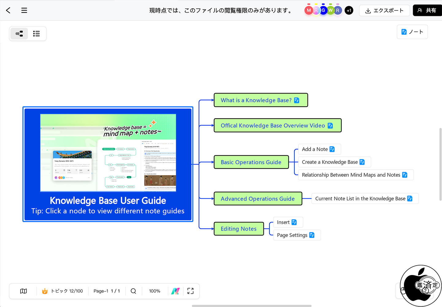 ノートを追加したマインドマップはナレッジベースとして機能し、いつでも参照・追跡できます。