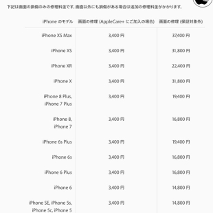 Apple「iPhone XR」 保証対象外 (OOW) 修理費用を公開