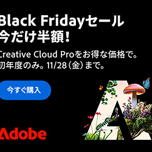 アドビ、Creative Cloud Proが今だけ初年度半額、教育機関向けは初年度75%オフになる「Black Friday セール」を開催(11/28まで)