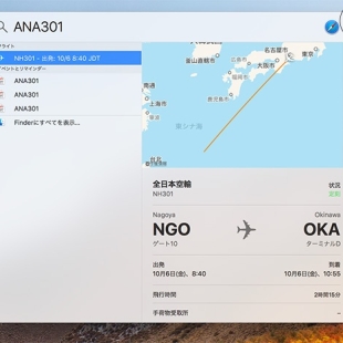 macOS High Sierra:Spotlightで、フライト情報が検索可能に