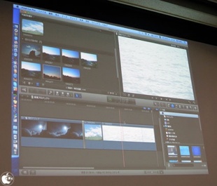 続いて「Final Cut Pro X」を使用して、長時間動画を圧縮してタイムラプス動画を作成するデモを行っていました。