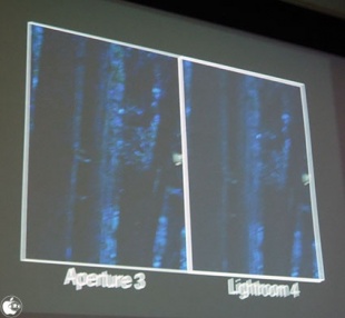 ただ、Aperture 3は、Adobe Photoshop Lightroom 4と比較して、暗所撮影データの現像を行った場合、シャドーの再現性に長けていると紹介していました。