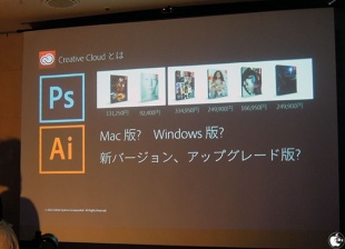 Photoshop CCの手ぶれ補正機能、Illustrator CCの文字タッチツール、InDesign CCの64bit化など機能強化が行われていると説明していました。