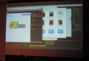 デモ紹介したのは、インタラクティブなアニメーションWebコンテンツの制作が行える「Edge Animate CC」で、AUGM東京2013のサイトを読み込んで、インタラクティブなアニメーションを追加が出来ることを紹介していました。