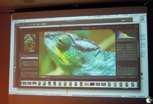 人前でプレゼンテーションするのが約1年ぶりだという西山氏にかわり、「Photoshop 写真業界向けプログラム」の紹介を行っていました。