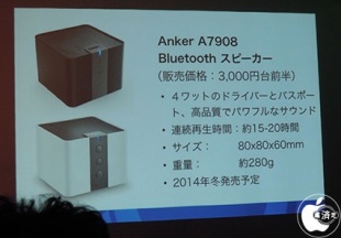 今後の製品として、Bluetoothスピーカー「Anker A7908」を秋に発売する予定だそうです。