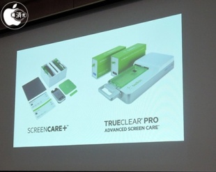 液晶保護フィルムや液晶保護ガラスを貼るサービスと組み合わせた「ScreenCare+装着システム」を展開しており、Aple Storeでは、同社製品販売数が10倍に増えているそうです。