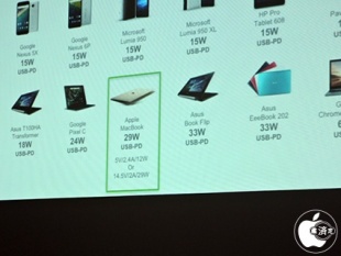 MacBook (12-inch, Early 2015)は、USB-PD充電で、5V2.4A/12W、14.5V/2A/29Wの2つにしか対応していないが、iPad Pro (12.9-inch)は、さらに9V/2A/18Wにも対応していることが分かっているそうです。