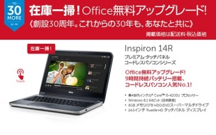 で、Inspiron 14Rシリーズや、Inspiron 14 5000などに、通常21,600円のMicrosoft Office Personal 2013 (日本語版)が無料追加できるキャンペーンを開催しています。