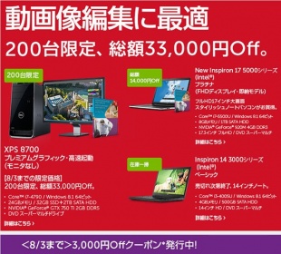 で、XPS 8700を30,000円オフ、Inspiron 17 5000シリーズを10,000円オフで販売しています。